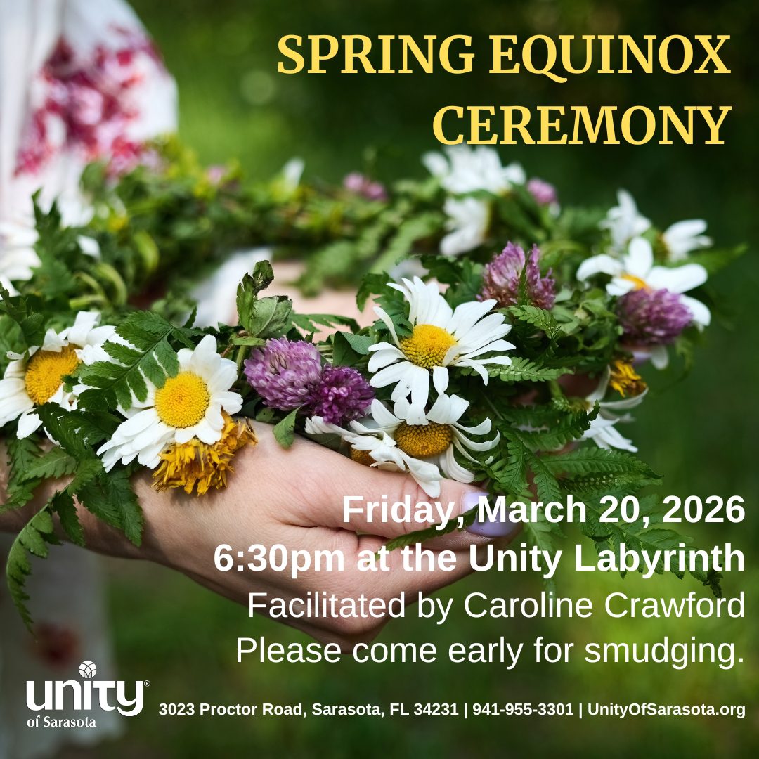 FeaturedUnity of Sarasota, 3023 Proctor Road, Sarasota, FL, 34231, United States Unity of Sarasota, 3023 Proctor Road, Sarasota, FL, 34231, United StatesFriday, March 20, 2026 6:30pm at the Unity Labyrinth Facilitated by Caroline Crawford Please come early for smudging.