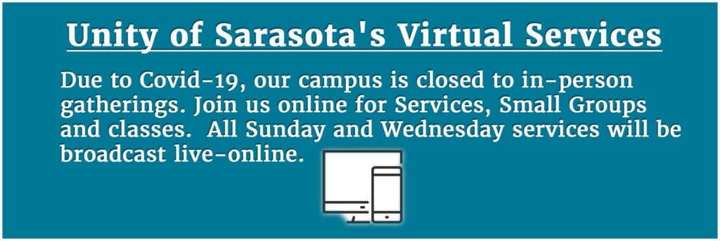 Our Services Sunday Celebration Service - 10:30 a.m. Our Sunday Morning Service is one that celebrates the divine spark in all of us. The 10:30 a.m. will also be broadcast livestream on this website. Sunday Celebration Service Click here to find ways to donate to help sustain Unity of Sarasota's ongoing presence. Thank you for your support! Enjoy our library of Sunday Celebration Service videos below Click the down arrow in the video window to view additional videos Special Services Library of Special Services Click here to find ways to donate to help sustain Unity of Sarasota's ongoing presence. Thank you for your support! Celebrations of Life Spiritual Unions Rites of Passage Prayer Vigils