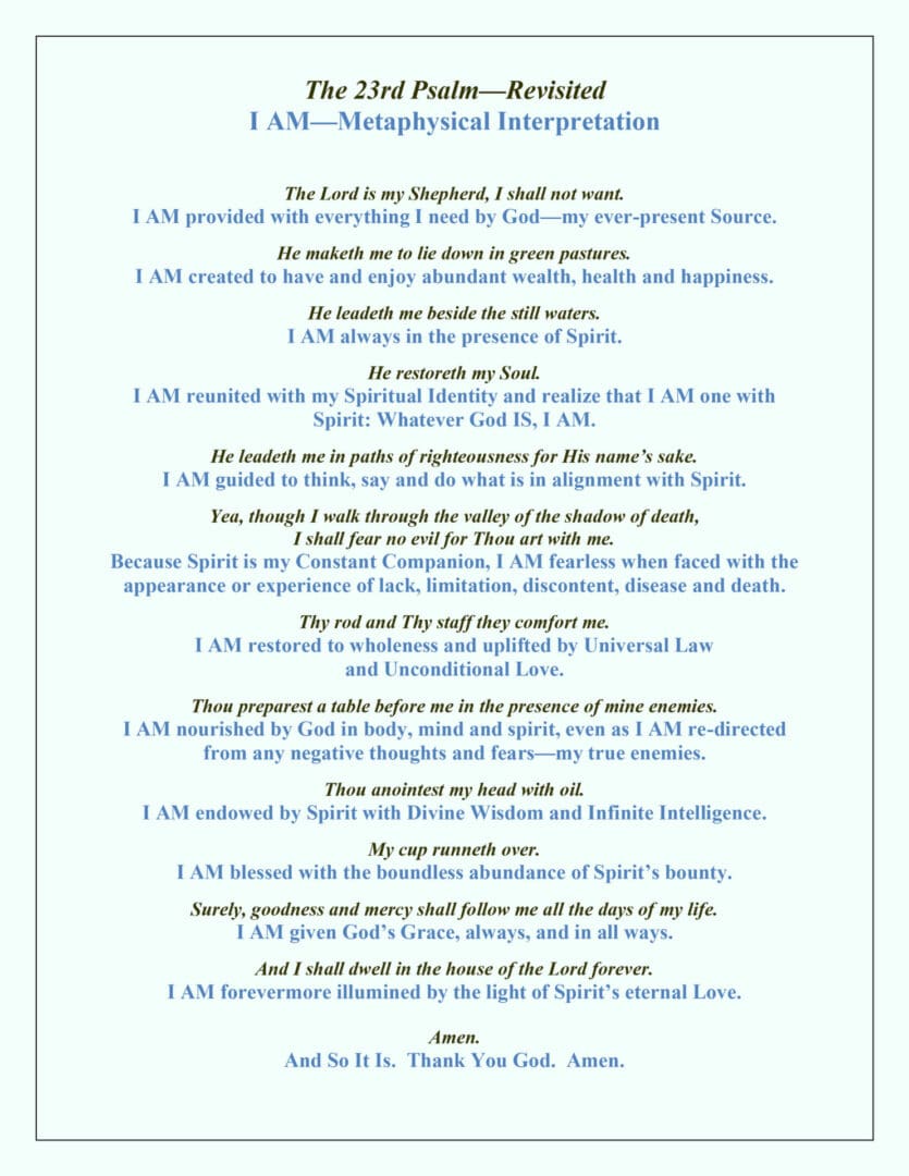 “In our lives I’m sure all of us, at one time or another, have experienced trials and tribulations—maybe circumstances that seemed unbearable and made us wonder if life was worth living. Having faced some of those times, at one point I turned to the 23rd Psalm for comfort. And as I repeated it to myself, I asked myself what was it trying to tell me. I began to interpret it to myself for my understanding.” ~ Dick Frederick